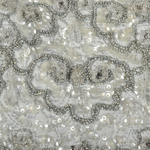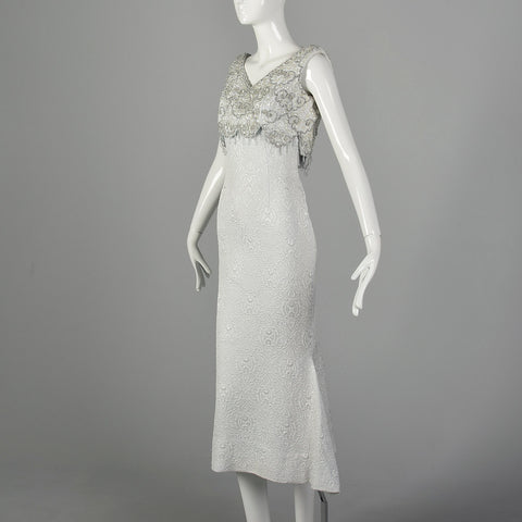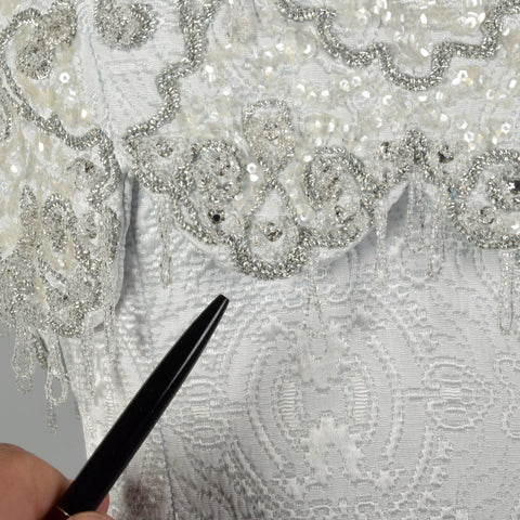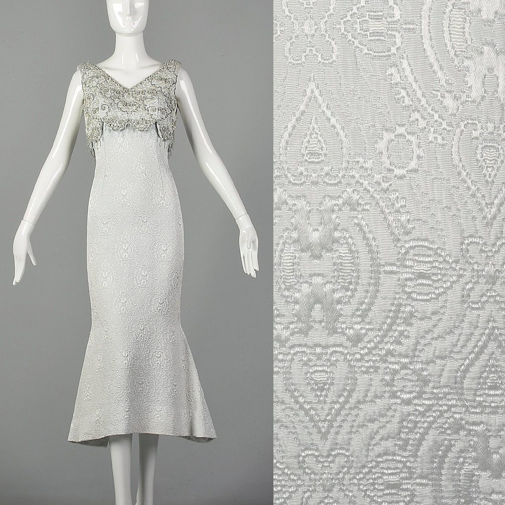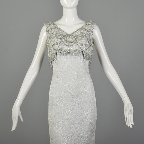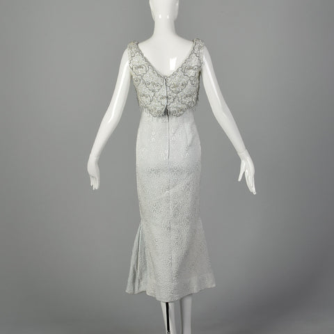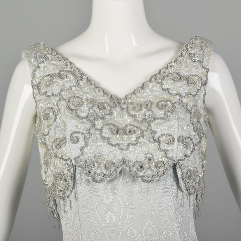 This listing is for one dress. The textile is unmarked. Stunning silvery blue gown. Beaded bodice with sequins and rhinestones. The hem of the bodi...