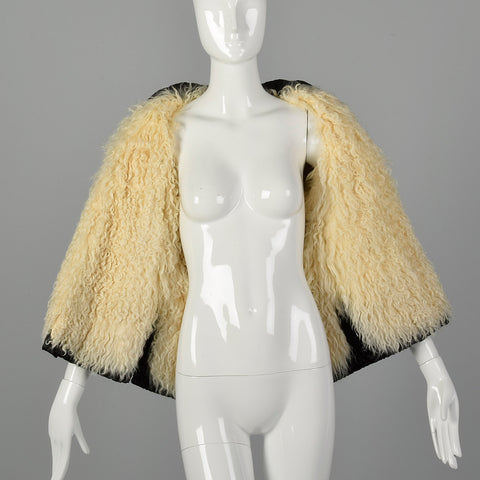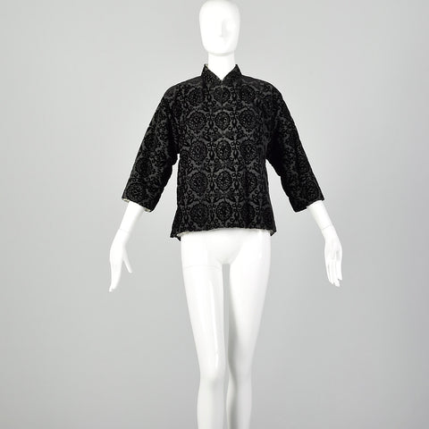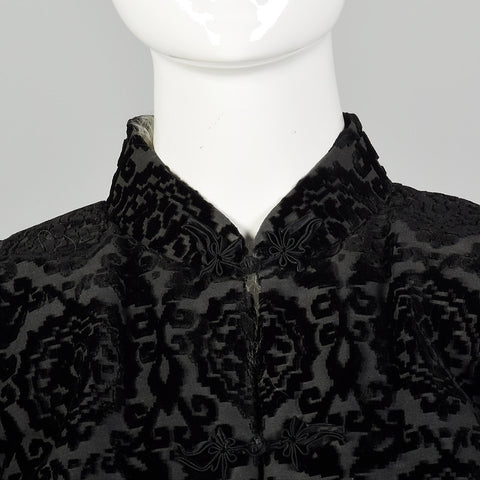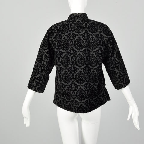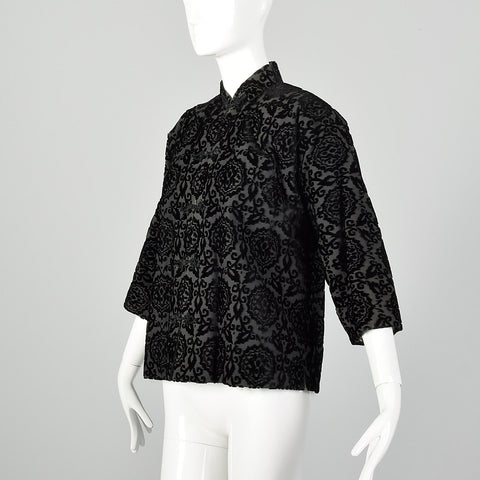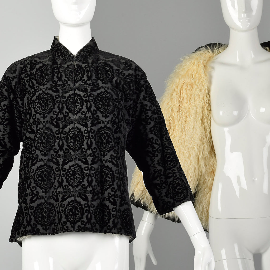 Small 1960s Black Burnout Velvet Tibetan Lamb's Fur Jacket