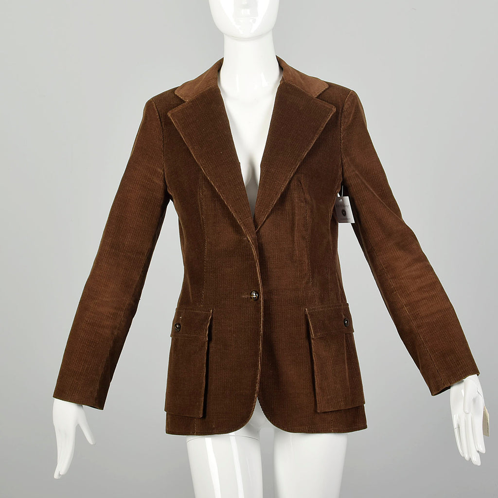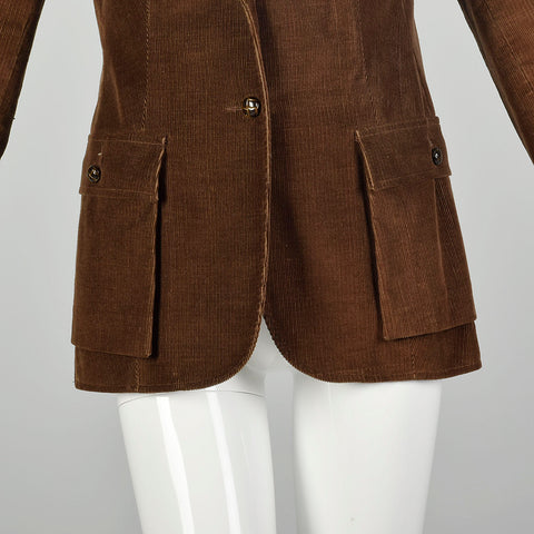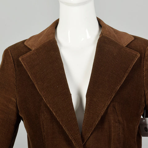 Small 1970s Brown Corduroy Blazer Casual Boho Hippie Jacket