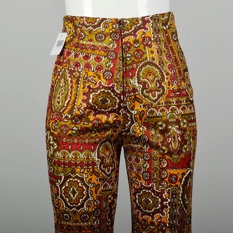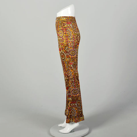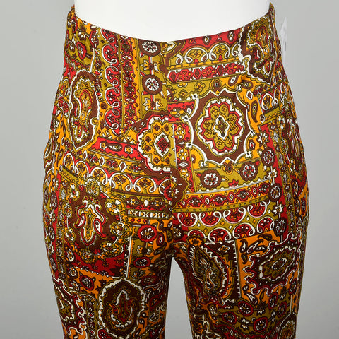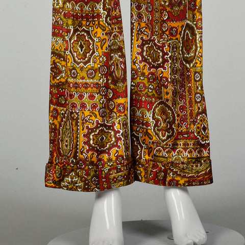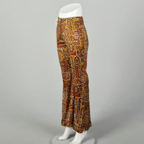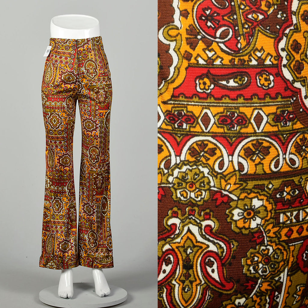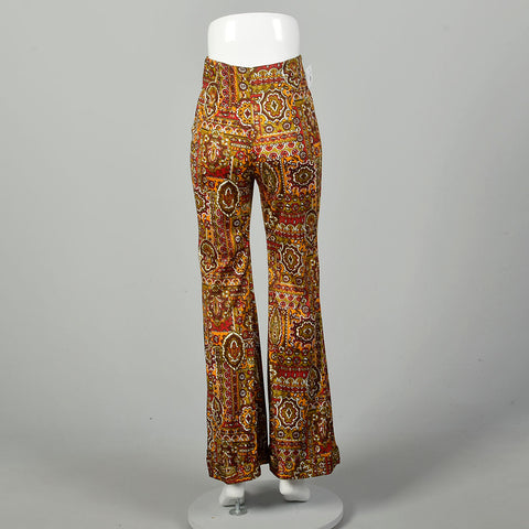 Small 1970s High Rise Pants Psychedelic Bohemian Bell Bottoms