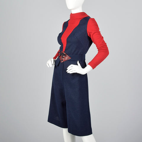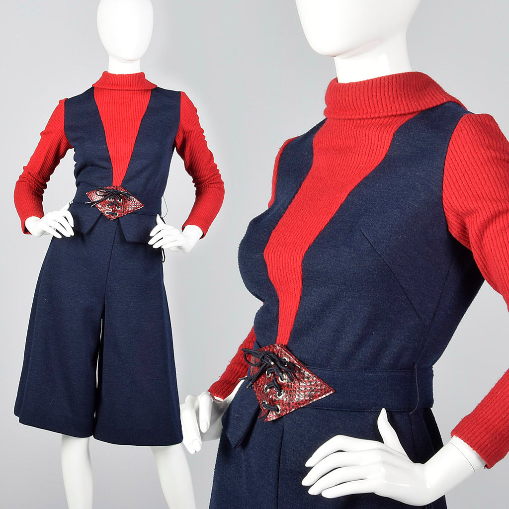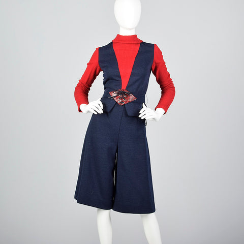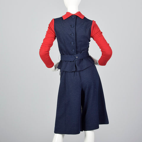 Small 1970s Knit Peplum Blouse and Culottes Set
