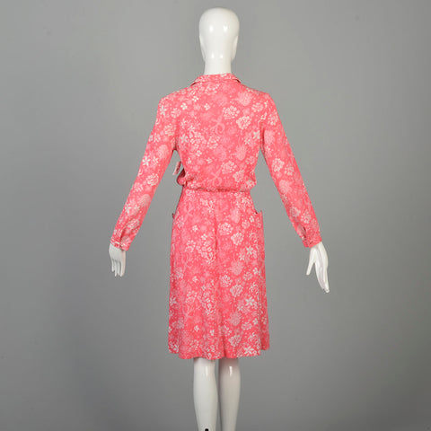 Small 1970s Liza by Lilly Pulitzer Dress Hot Pink Print Barbie Shirtwaist Dress