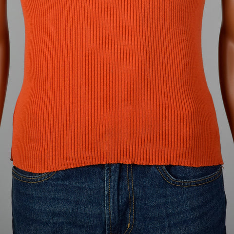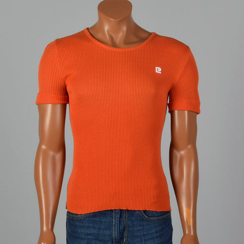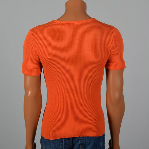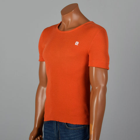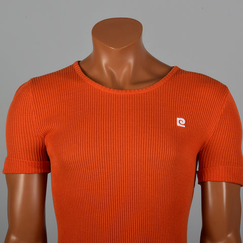 Small 1970s Pierre Cardin Knits Orange Sweater with Short Sleeves