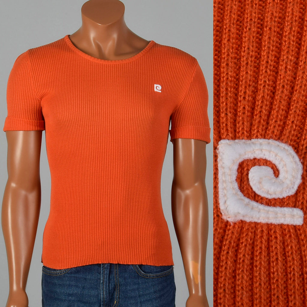 This listing is for one shirt. Textile is unmarked. Pierre Cardin Knits shirt. This is a soft rib knit shirt in bright orange with the Pierre Cardi...