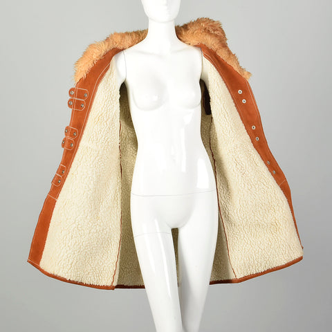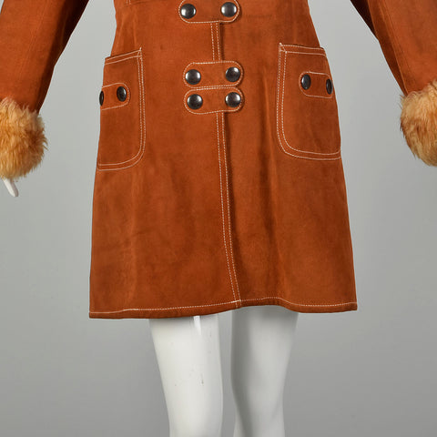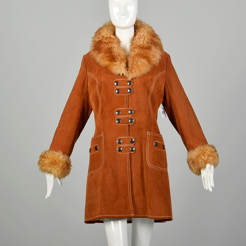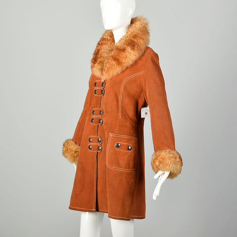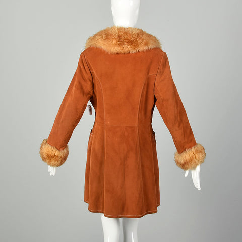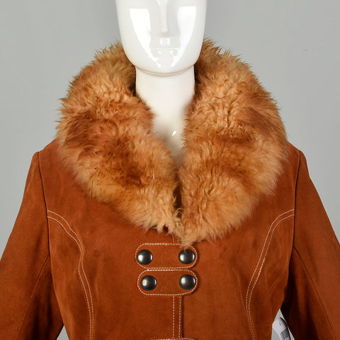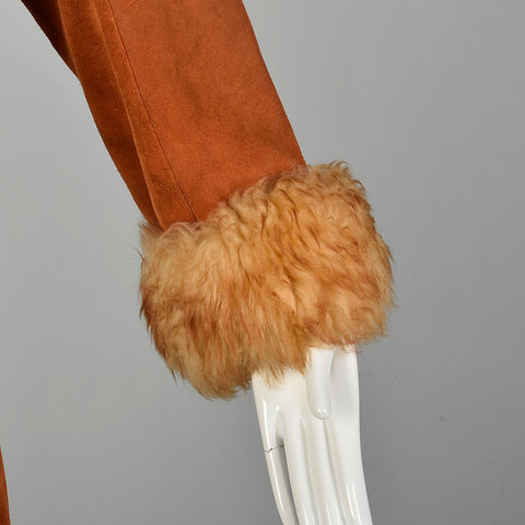 Small 1970s Suede Shearling Coat Boho Leather Sherpa Outerwear