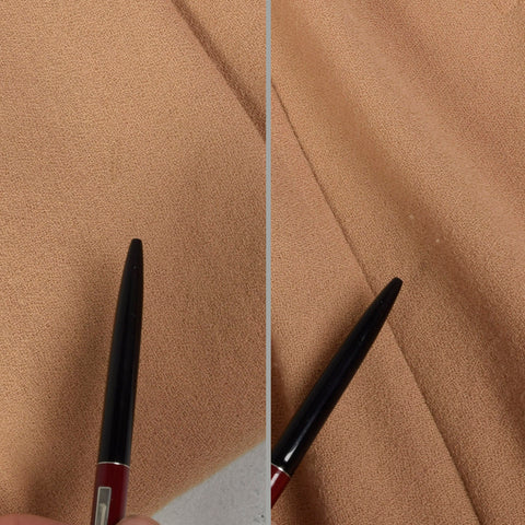 This tan suit is the perfect smart set for the modern working woman. The skirt has stitched pleats that open up giving the skirt a full hem. The sk...