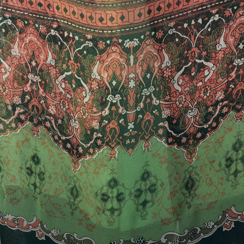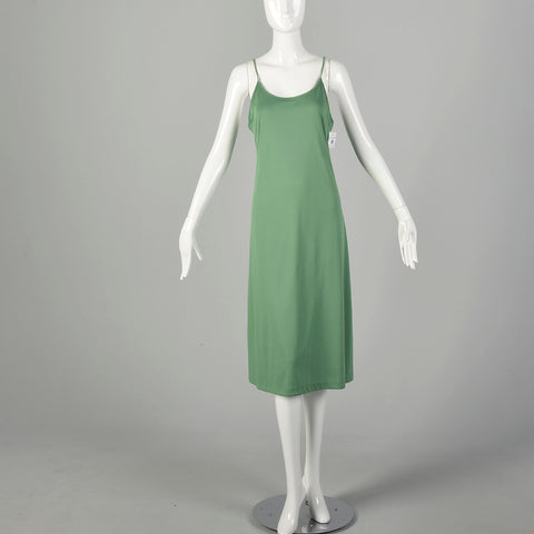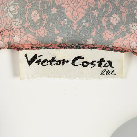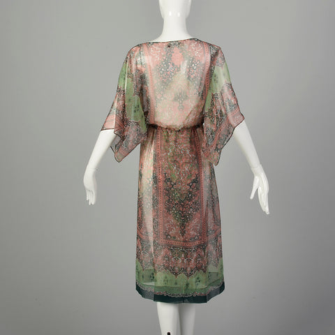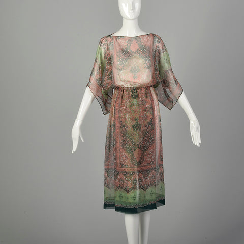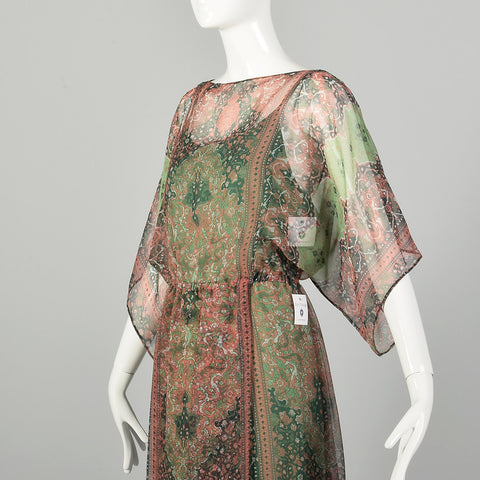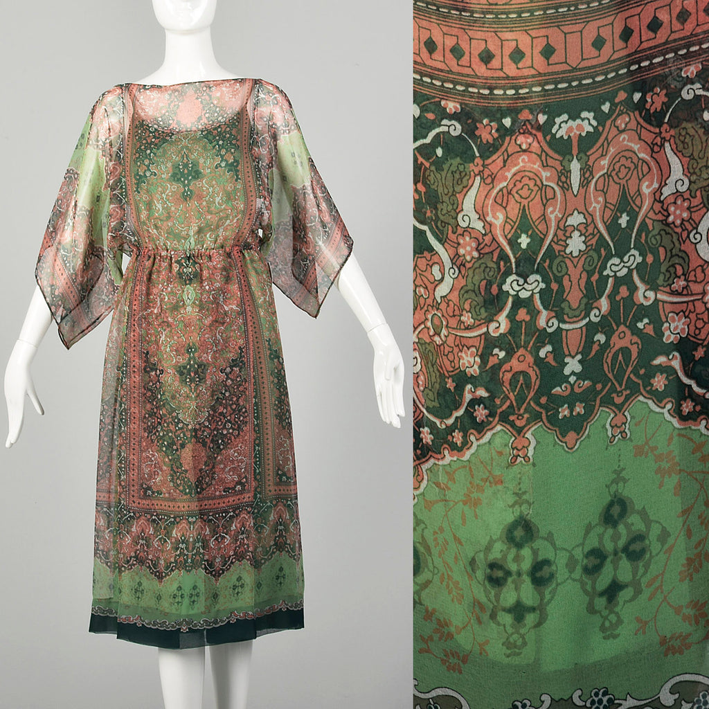 Small 1970s Victor Costa Dress Green Two-Piece Sheer Chiffon Boho