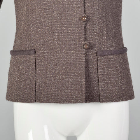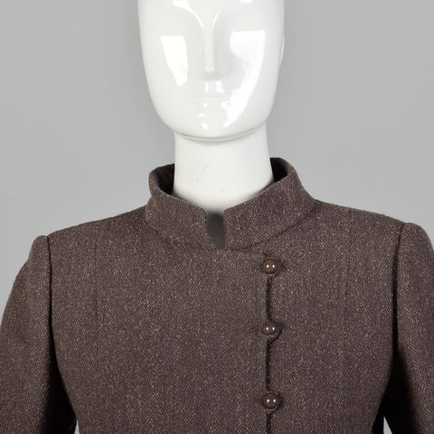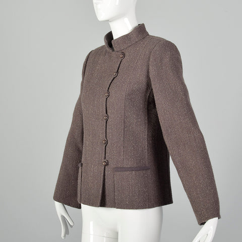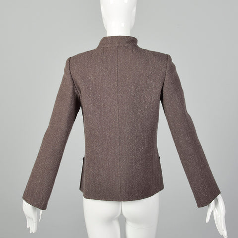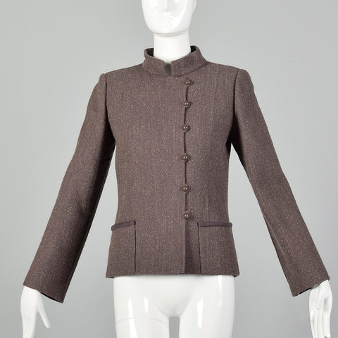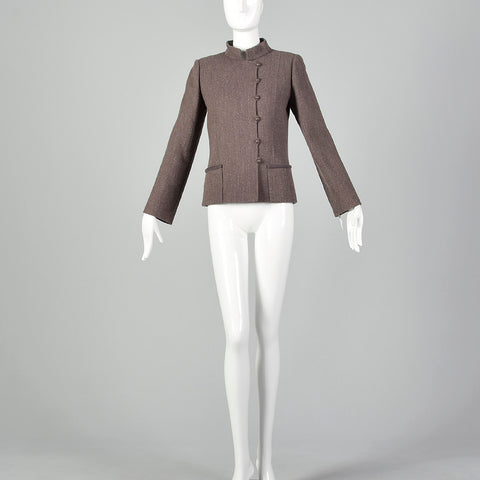 This listing is for one jacket. The textile is unmarked but feels like a wool blend. Minimalist, marled brown blazer. Asian inspired Mandarin colla...