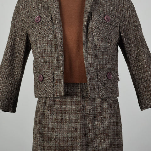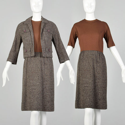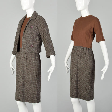 Small Brown Knit and Tweed 1960s Dress Set