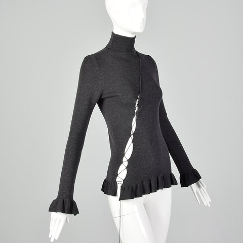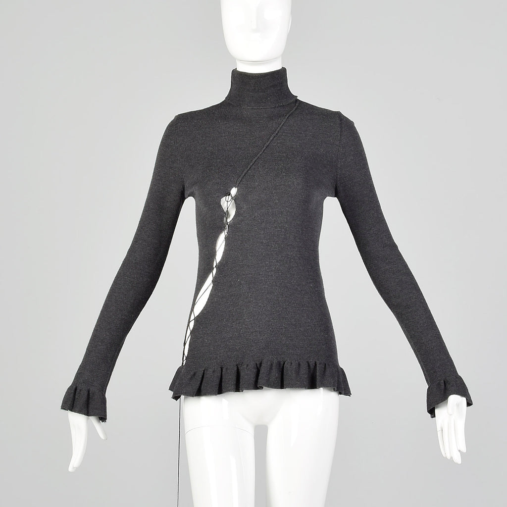 Small Jean Paul Gaultier Maille Femme 1990s Grey Turtleneck Sweater