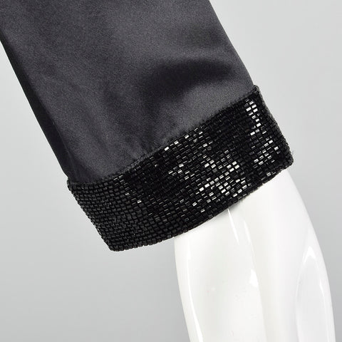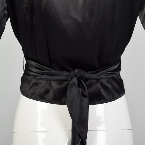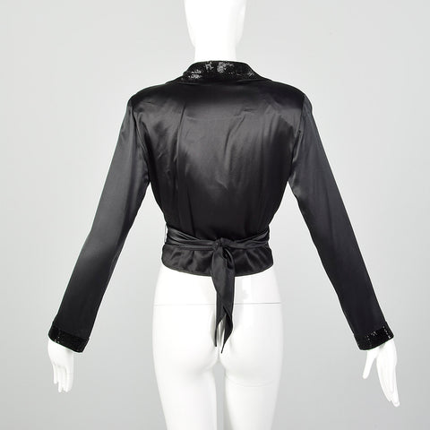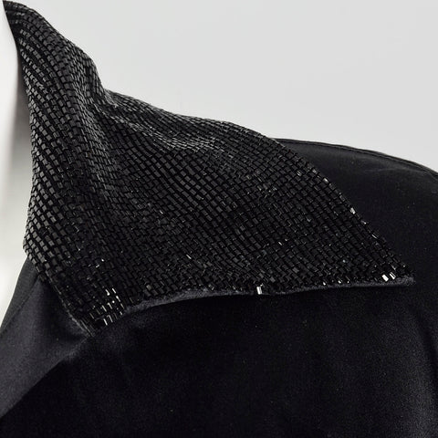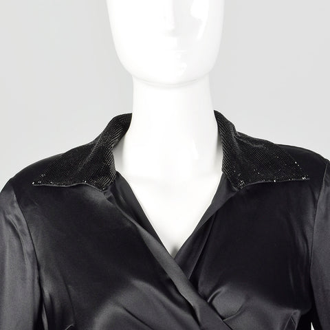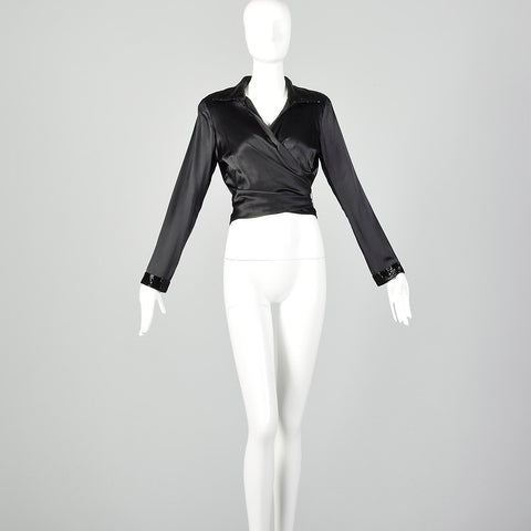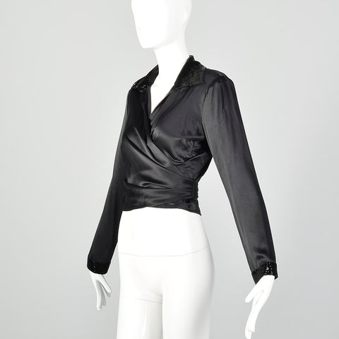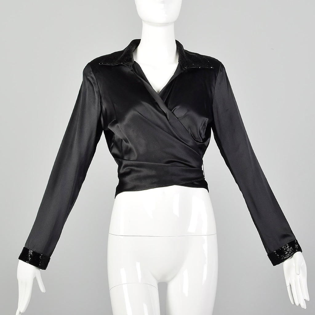 Small-Large 1980s Black Beaded Collar Wrap Top