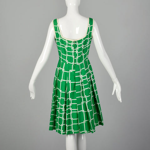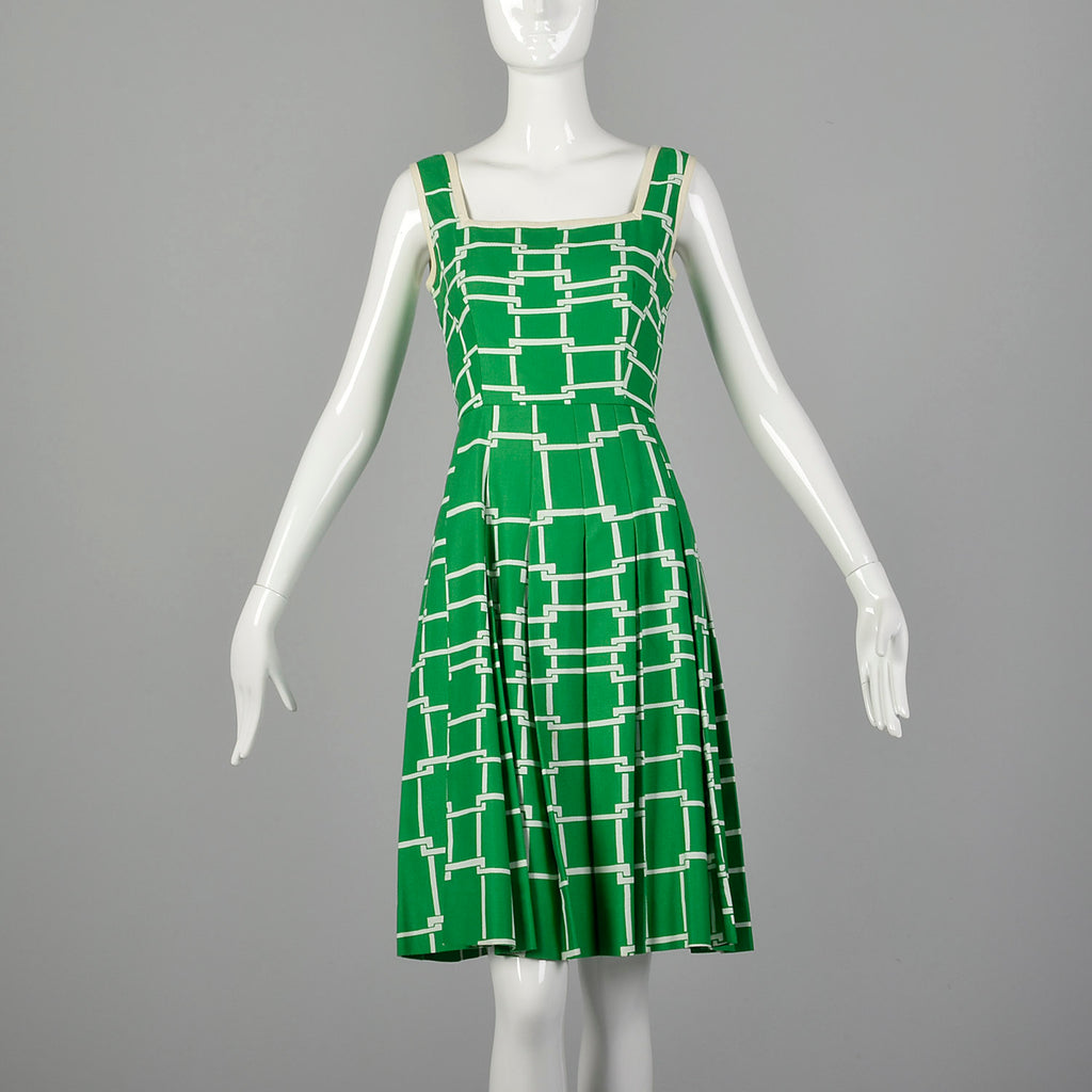Small Malcolm Star 1960s Green and White Dress
