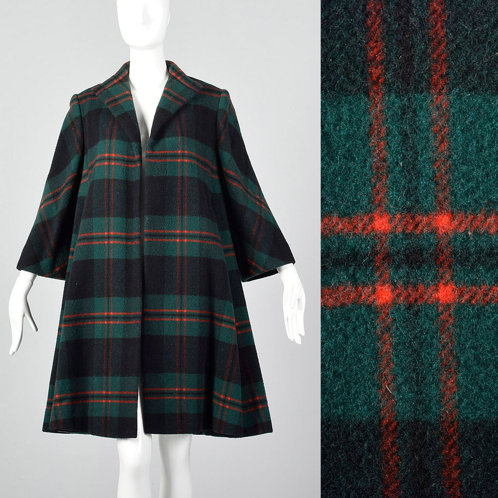 Small-Medium 1950s Pauline Trigere Green Plaid Swing Coat