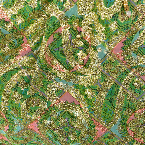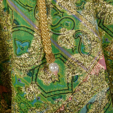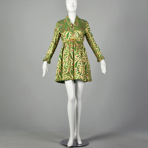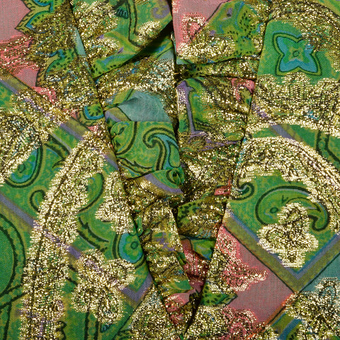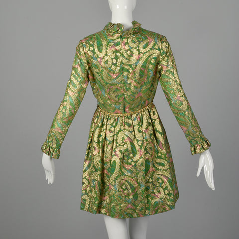 Small Mollie Parnis 1960s Green and Gold Paisley Dress