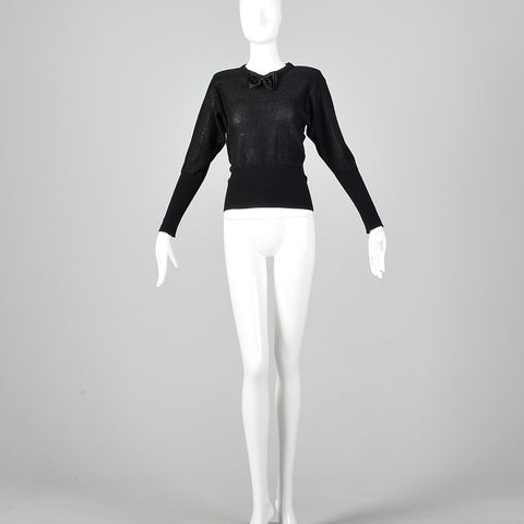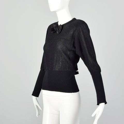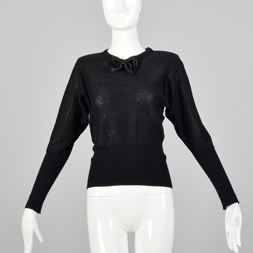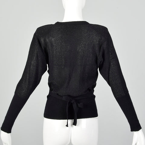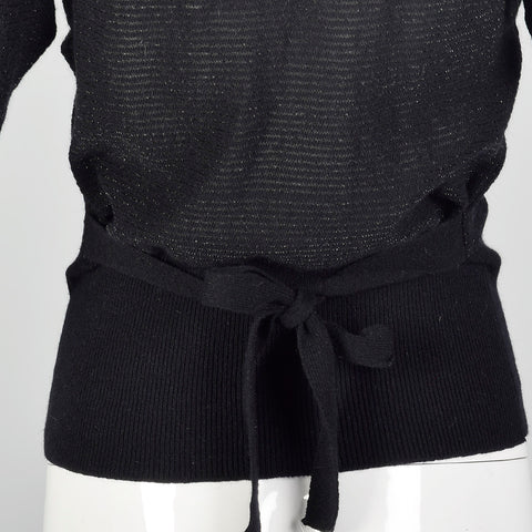 This listing is for one sweater. Textile is wool/angora blend with lurex stripes. A charming 1980s lightweight semi-sheer black sweater with enough...