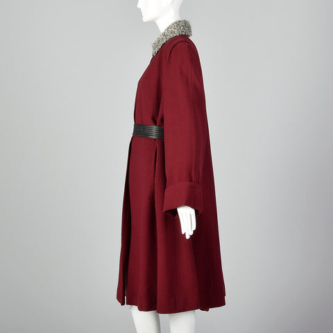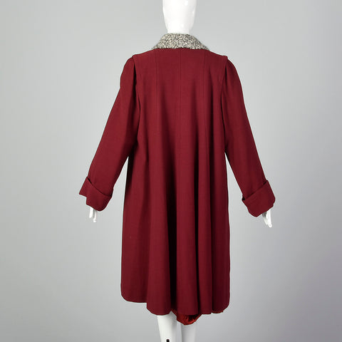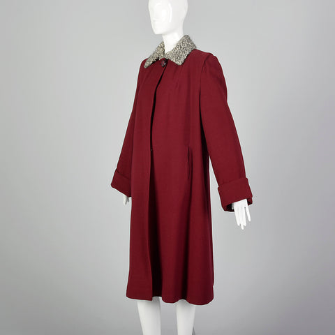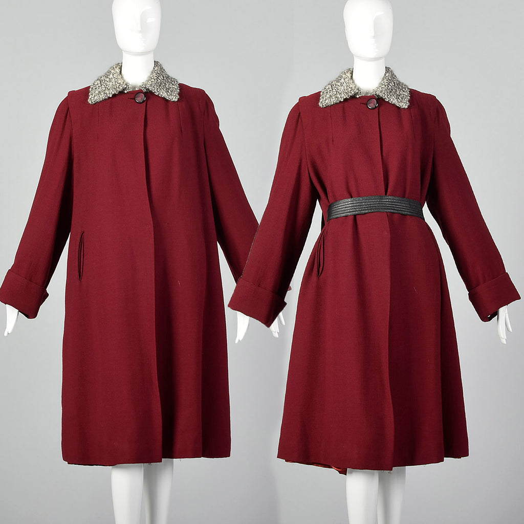 XL 1940s Burgundy Swing Coat