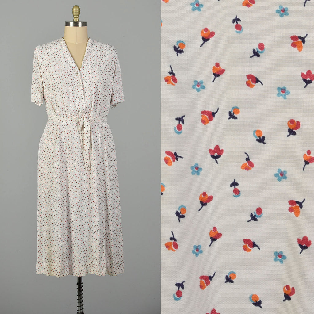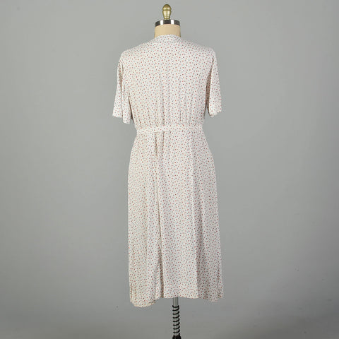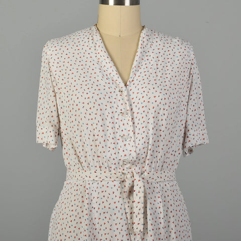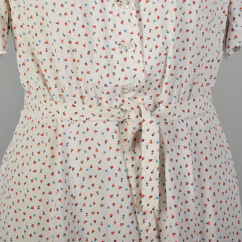 XL 1940s Shirtwaist Day Dress Floral Short Sleeve Summer Volup Cold Rayon