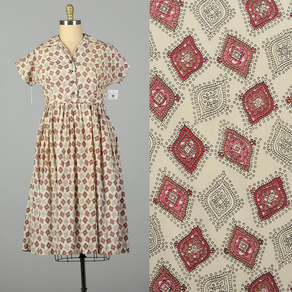 XL 1950s Cotton Day Dress Deadstock Lightweight Volup Summer Casual