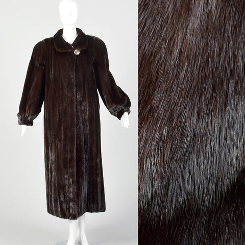 XL Brown Full Length Mink Fur Coat