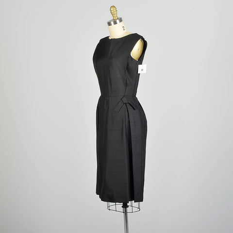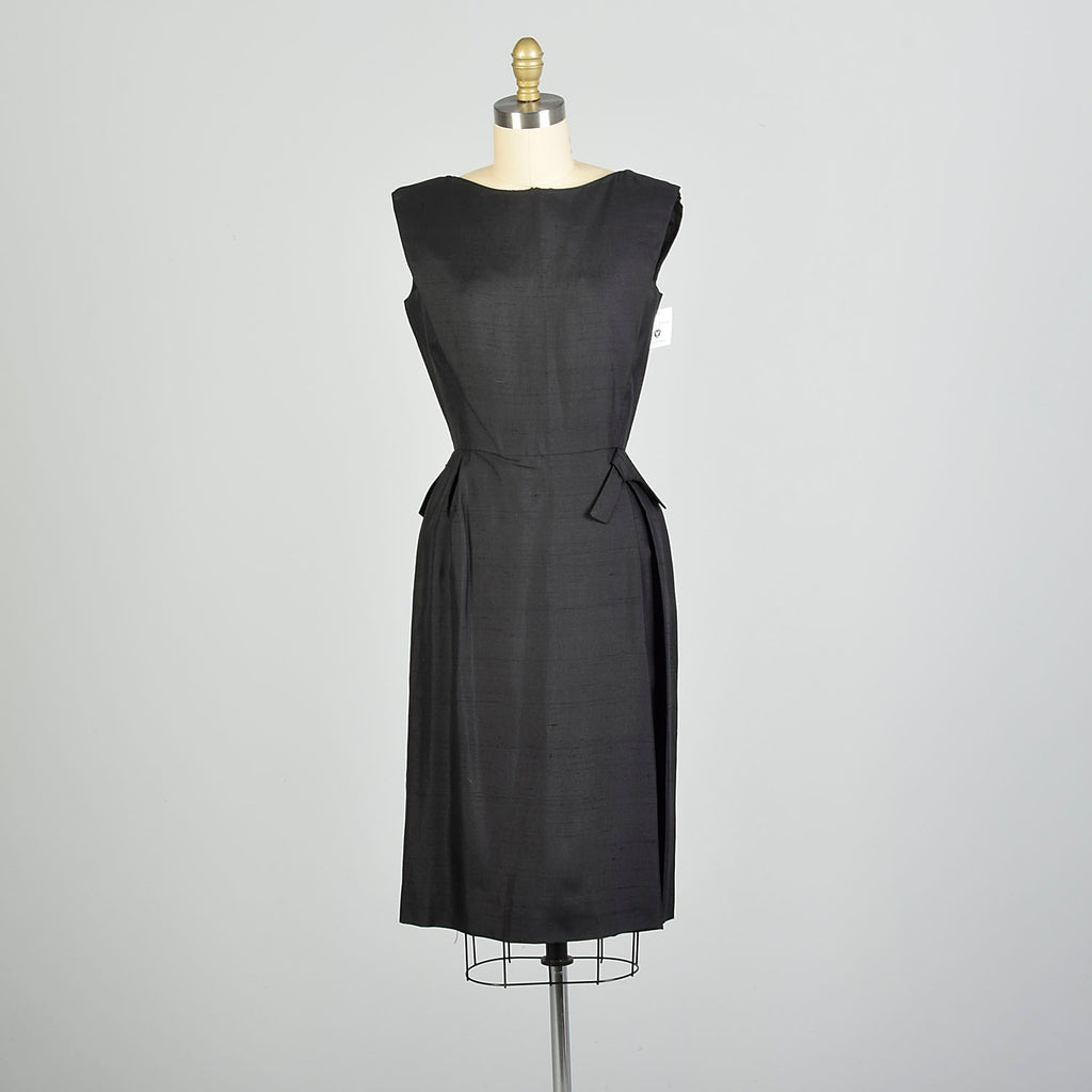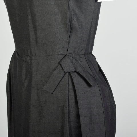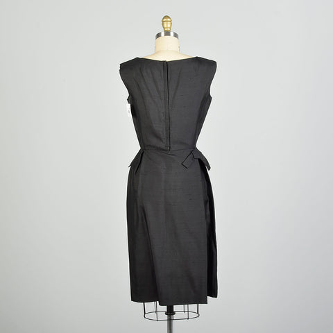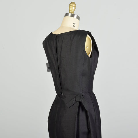 XS 1950s Sleeveless Black Silk LBD Cocktail Dress