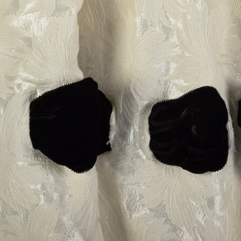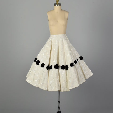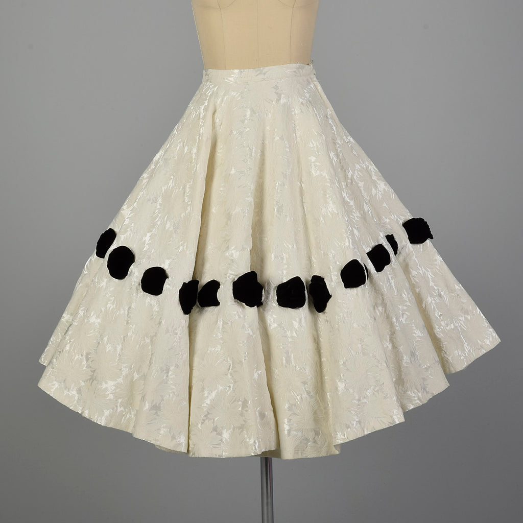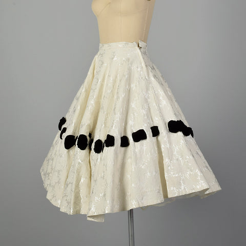 XS 1950s White Brocade Circle Skirt with Velvet Ribbon