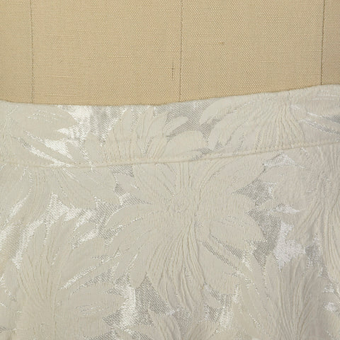 This listing is for one skirt. The textile is an unmarked brocade. Stunning white circle skirt. Brocade textile has a floral pattern. Decorative bl...