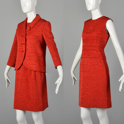 XS 1960s Harrods Red Three Piece Suit
