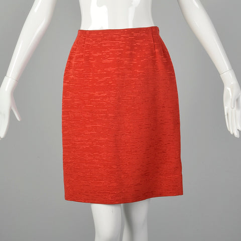 This listing is for one skirt suit. The textile is a cotton blend. Chic and sharp lipstick red skirt suit with jacket, top and skirt all in an exci...