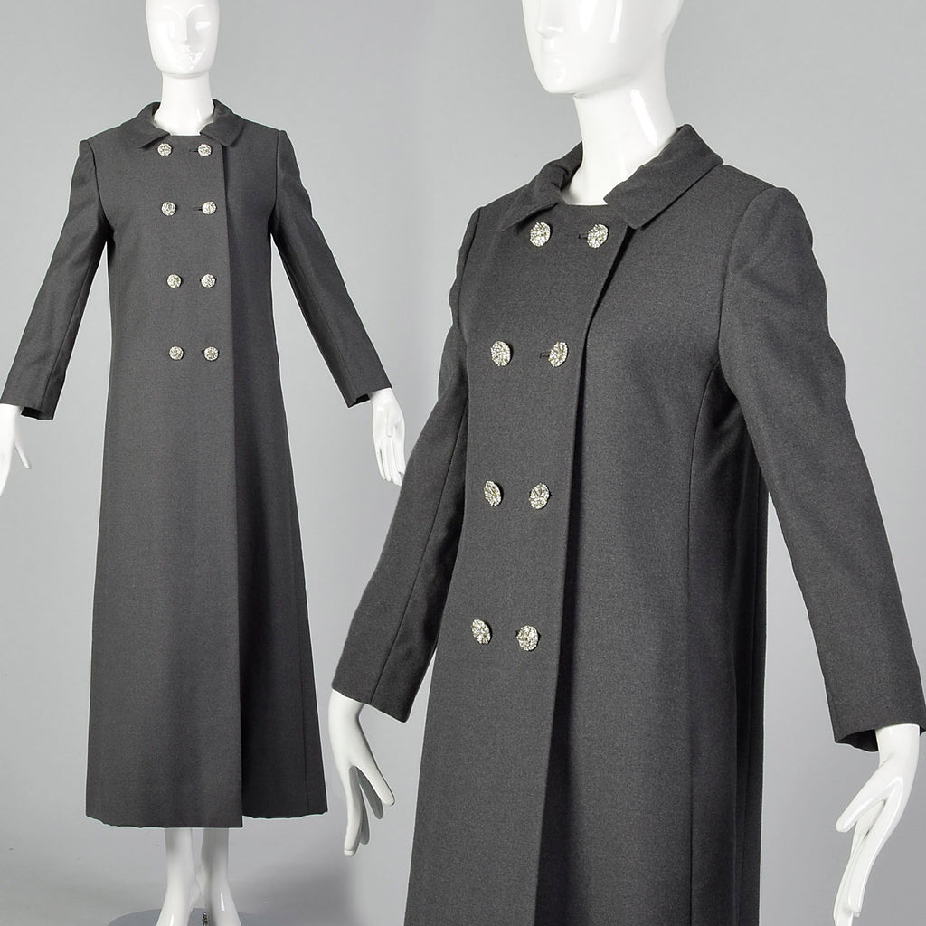 This listing is for one coat. Textile is an unmarked fall to winter weight wool or wool blend. Coat features collared neckline, long sleeves, long ...