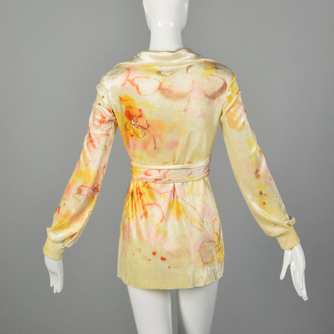 XS Holly Harp 1970s Cream Hand Painted Wrap Top