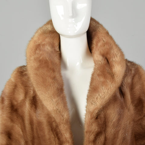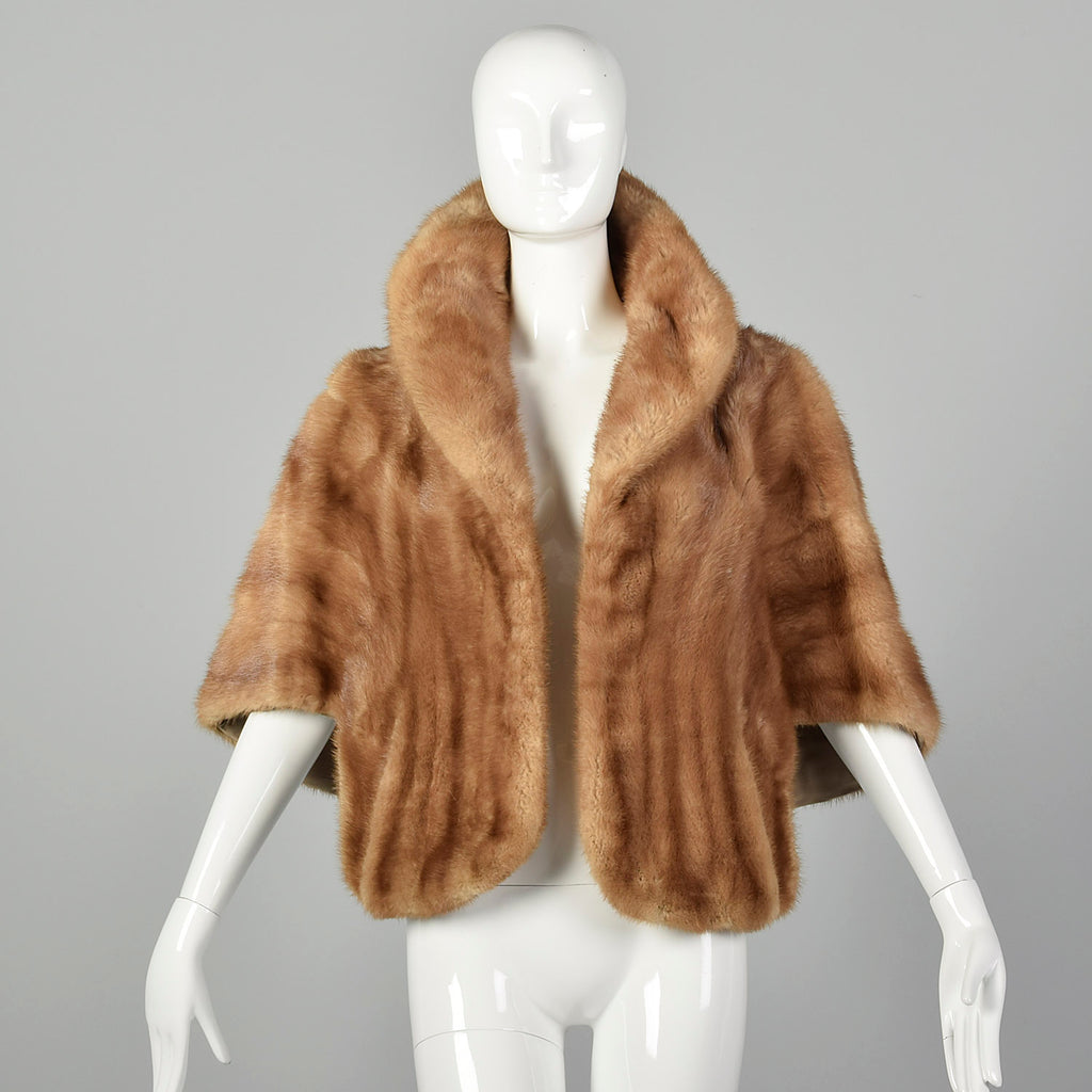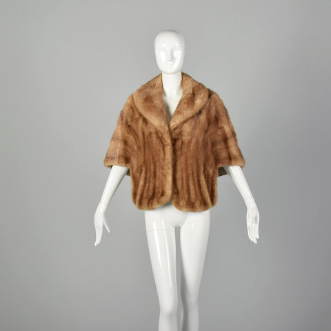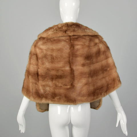This listing is for on stole. The textile is fur. Warm brown mink stole. The wrap has a large collar that can be worn up or down. The front is open...