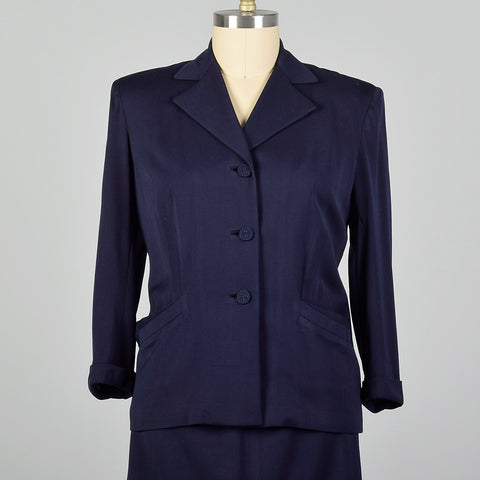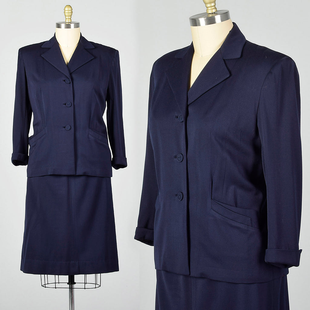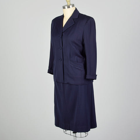 XXL 1950s Navy Gabardine Skirt Suit
