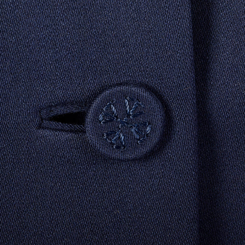 This listing is for one skirt suit, including one skirt and one jacket. The textile is unmarked. Sassy navy blue, gaberdine skirt suit. Blazer has ...