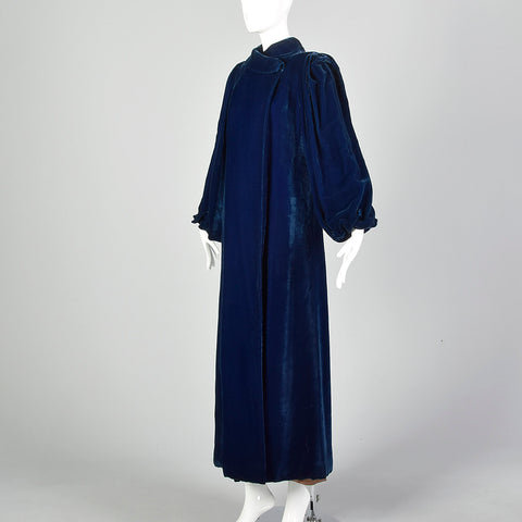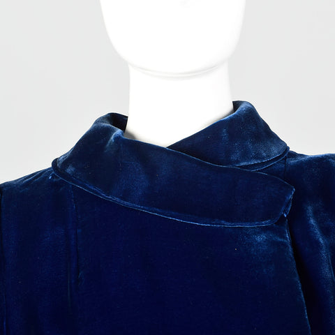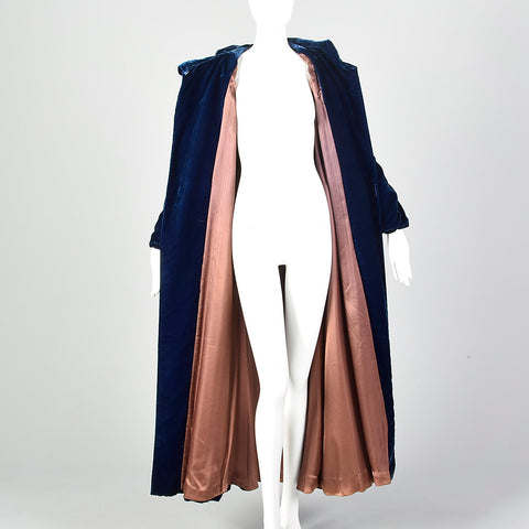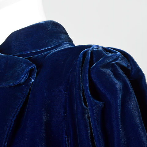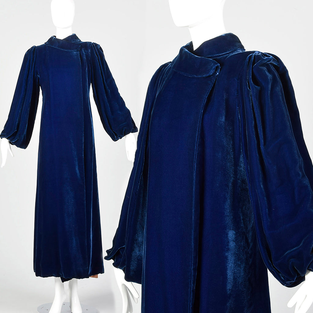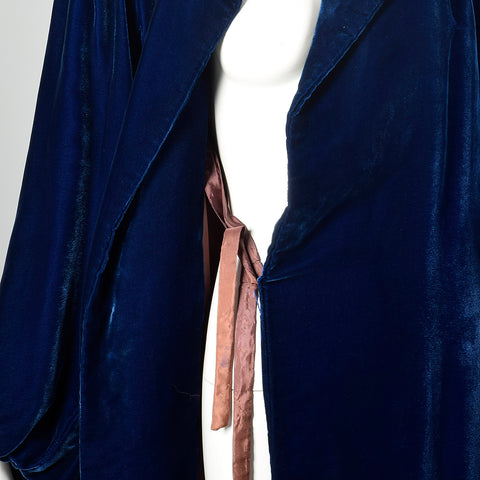 This listing is for one coat. The textile is unmarked but feels like silk. Luxurious, plush, royal blue opera coat. Wrap over neck closure with int...