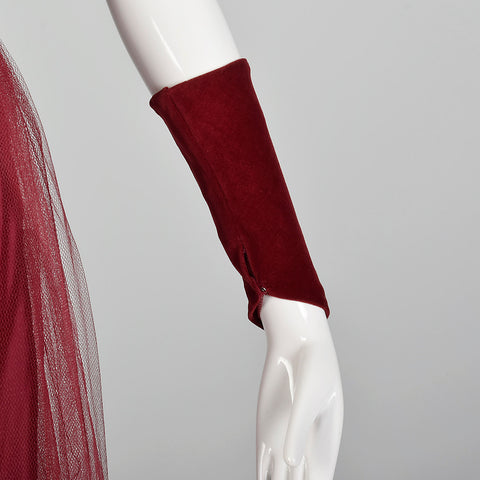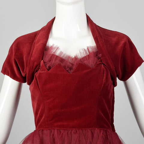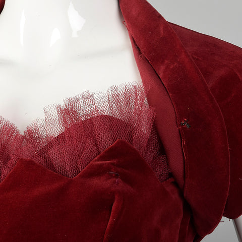 This listing is for one dress. Textile is an unmarked mid weight velvet with mesh netting details. Dress features sweetheart neckline, short sleeve...