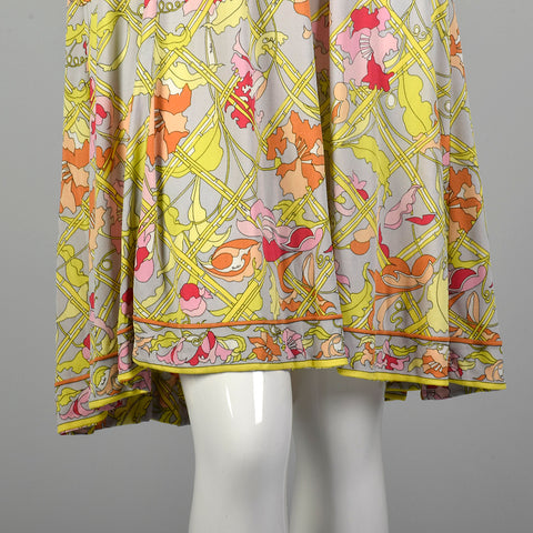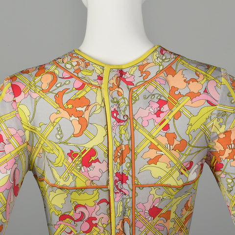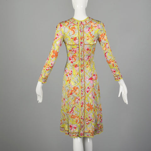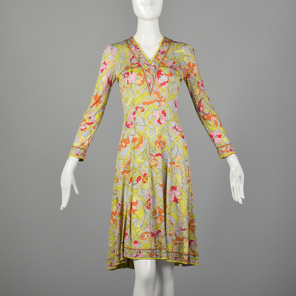 XXS 1960s Emilio Pucci Dress Long Sleeve Signature Print Silk Rayon Jersey