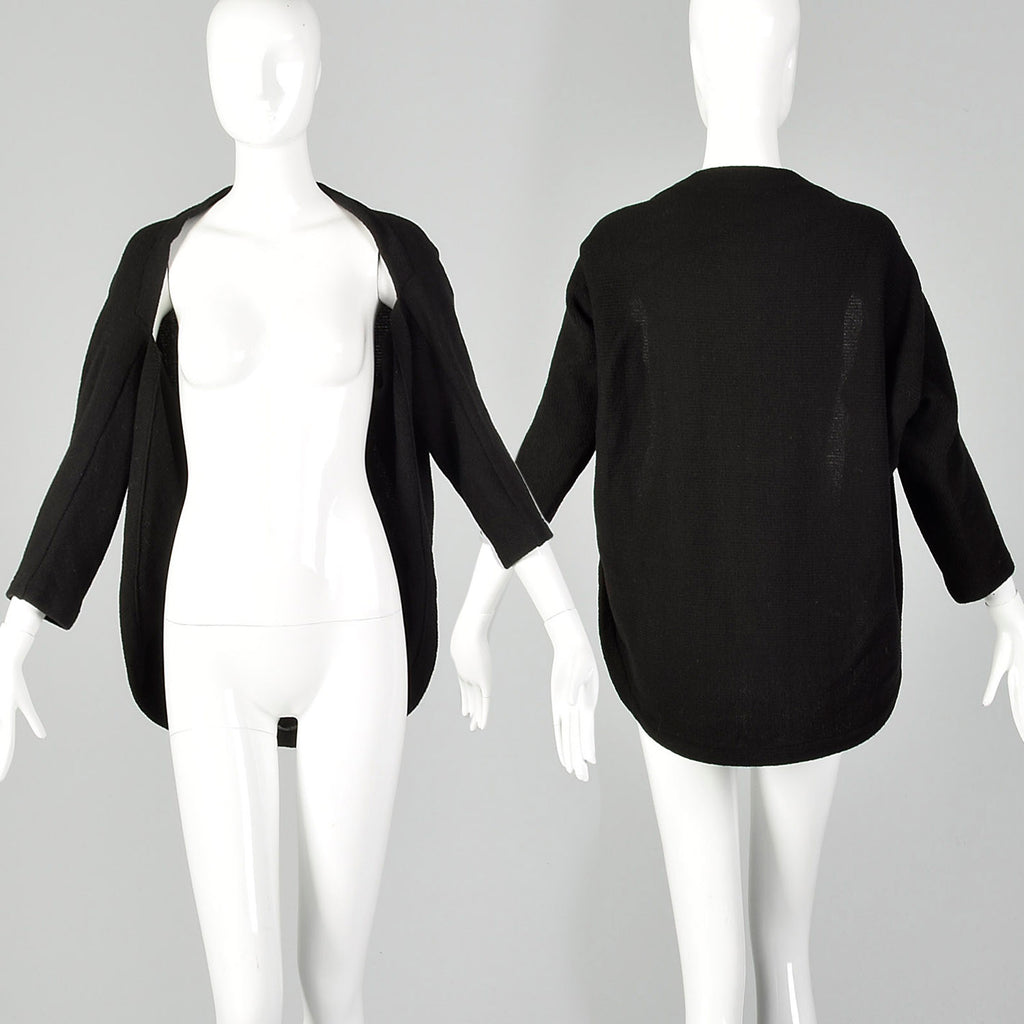 This listing is for one sweater. The textile is a wool blend. Minimalist, Avant Garde, black sweater. Open front cardigan, drapes beautifully on th...